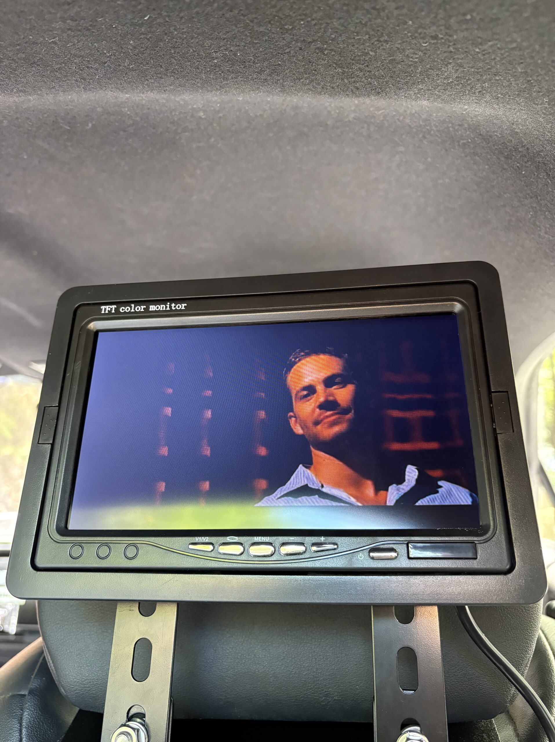 たとえ運転席のSF600で最新のナビ画面を表示していても、データシステムの分配器(LTD002)を経由しているため、背後のリアモニターでは独立してDVDの映像を流し続けておけるのです(※音声はメインソースに依存します)。