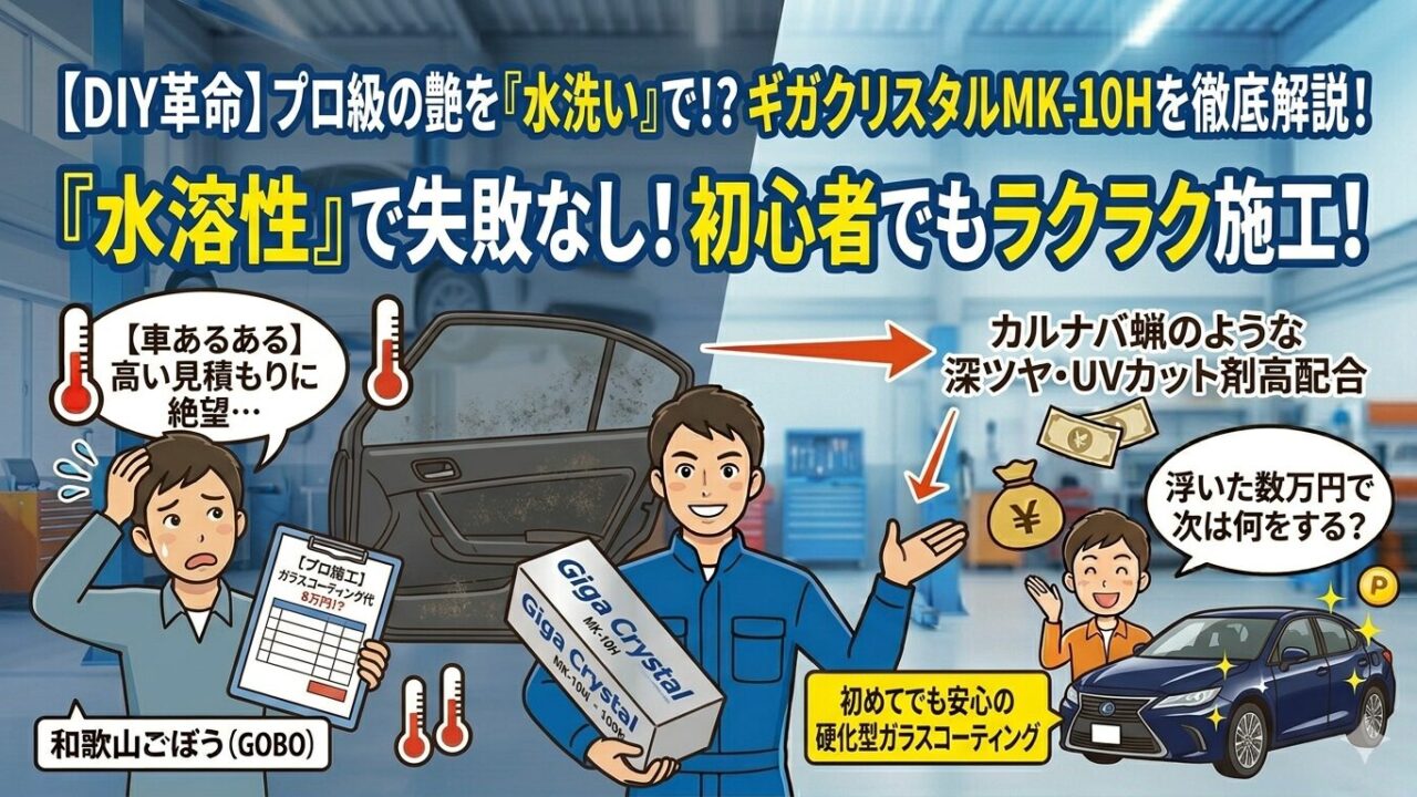 今日は、私がプロの視点で見ても「これは楽で確実やな」と唸った、DIYガラスコーティングの最高峰**【ギガクリスタルMK-10H】**をご紹介します。