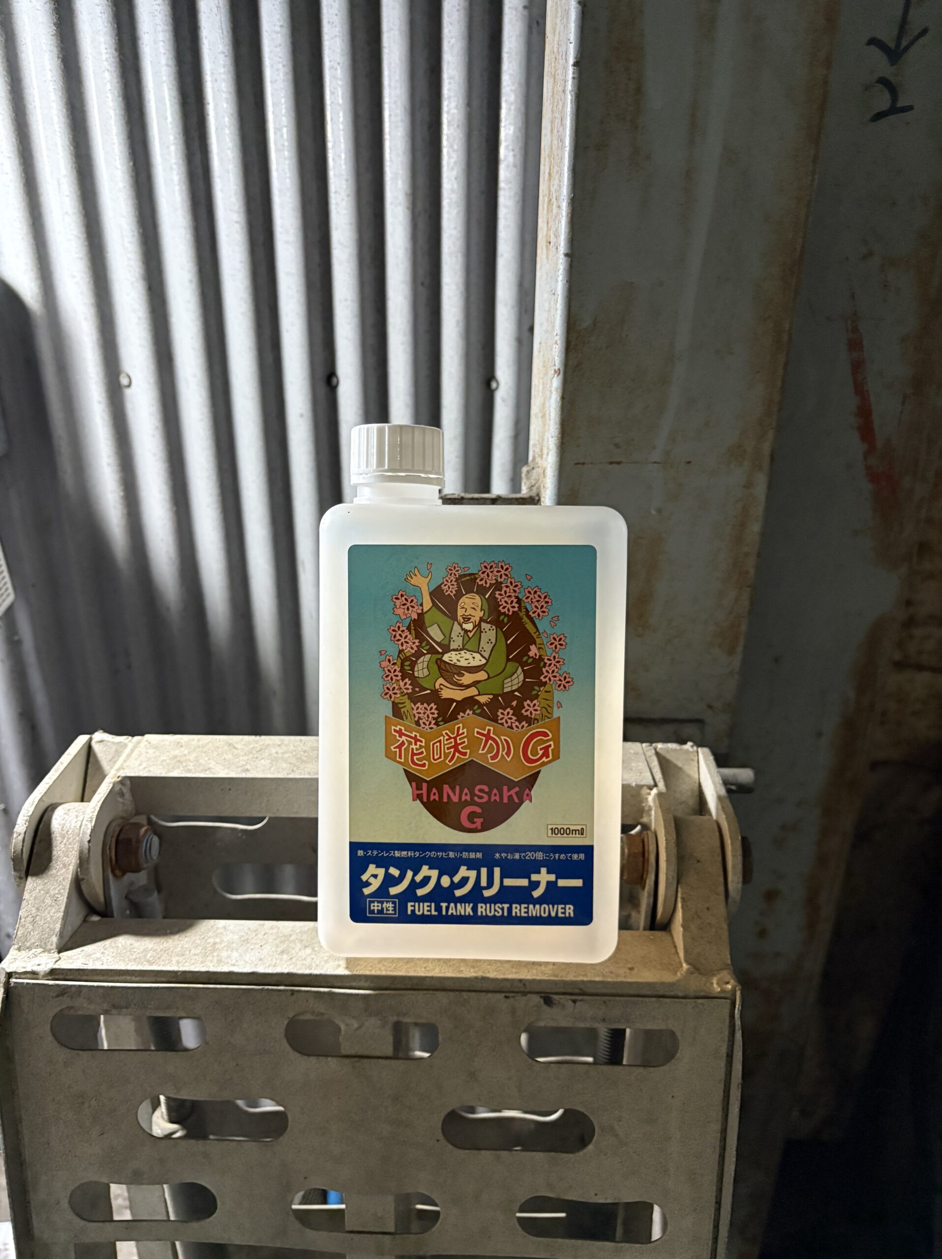 手に入れた新しいタンクも、安心のためにサビ取りを行います。