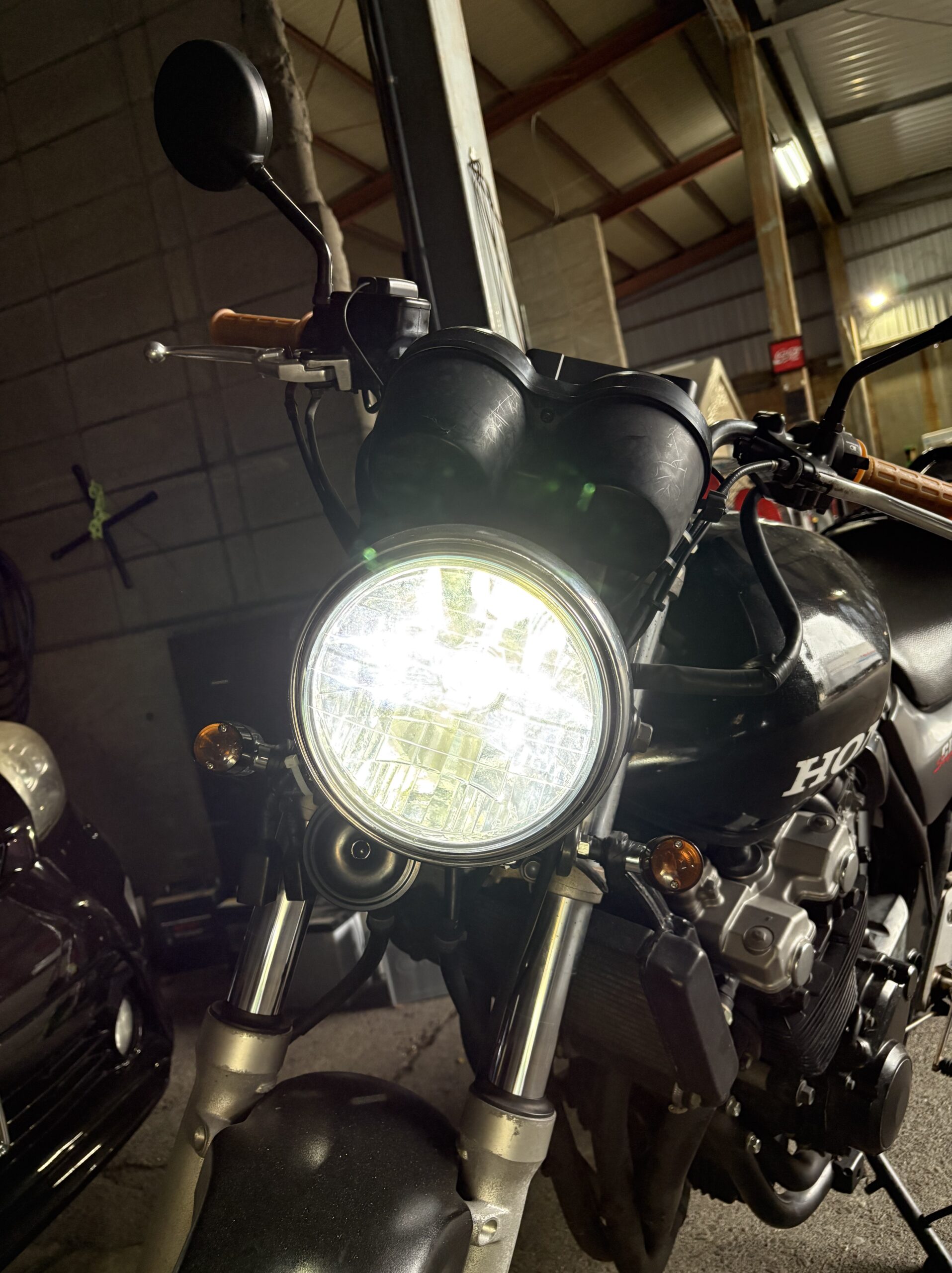 - H4 LEDバルブに交換:最新の高性能H4 LEDバルブを装着。夜間の視認性が劇的に向上し、これで安心して夜のツーリングを楽しめます!