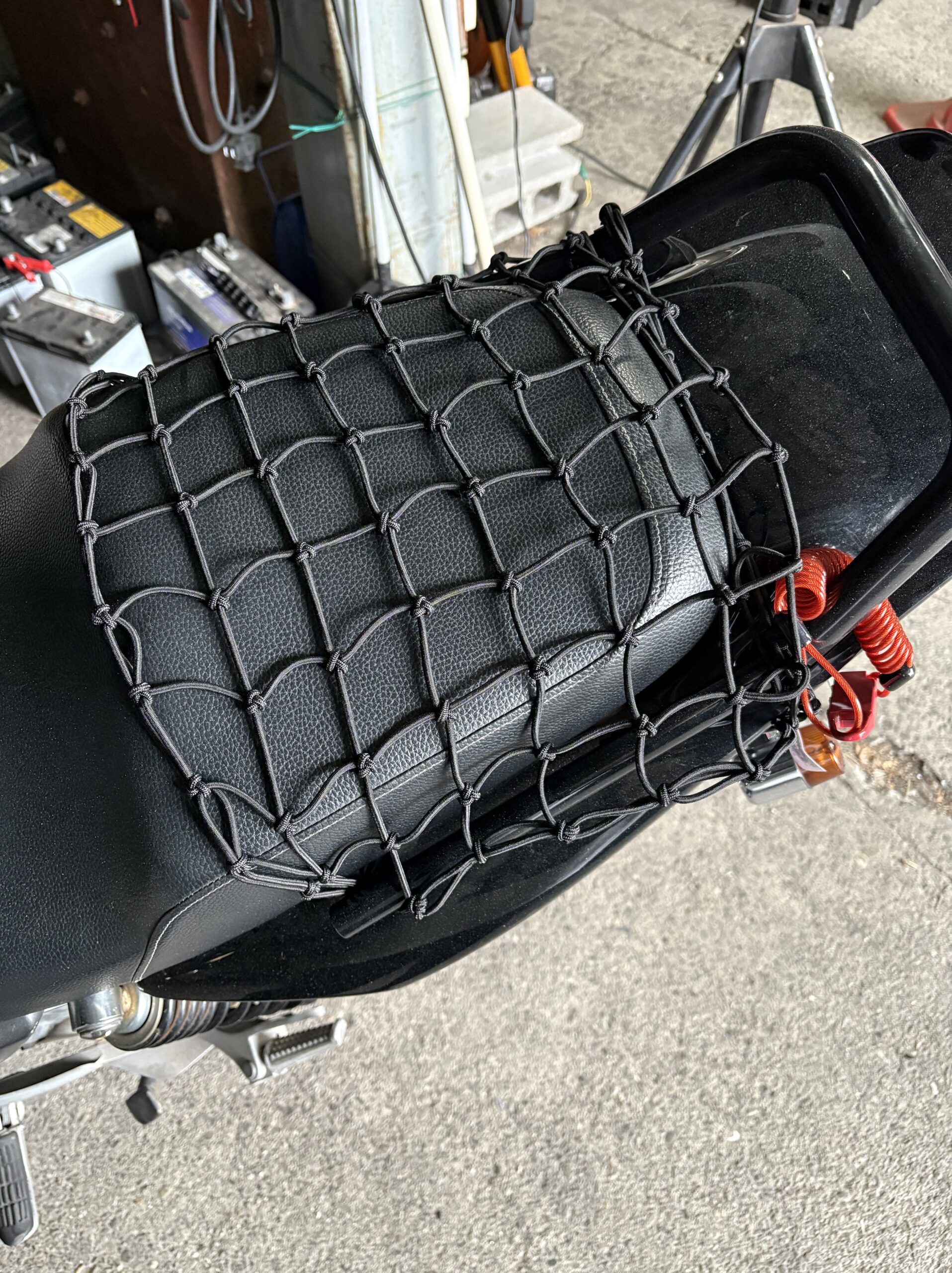 - タナックス ツーリングネット(MF-4563)を常備:リアシートに常備しておけば、急な荷物や脱いだ上着などを固定するのに非常に便利です。