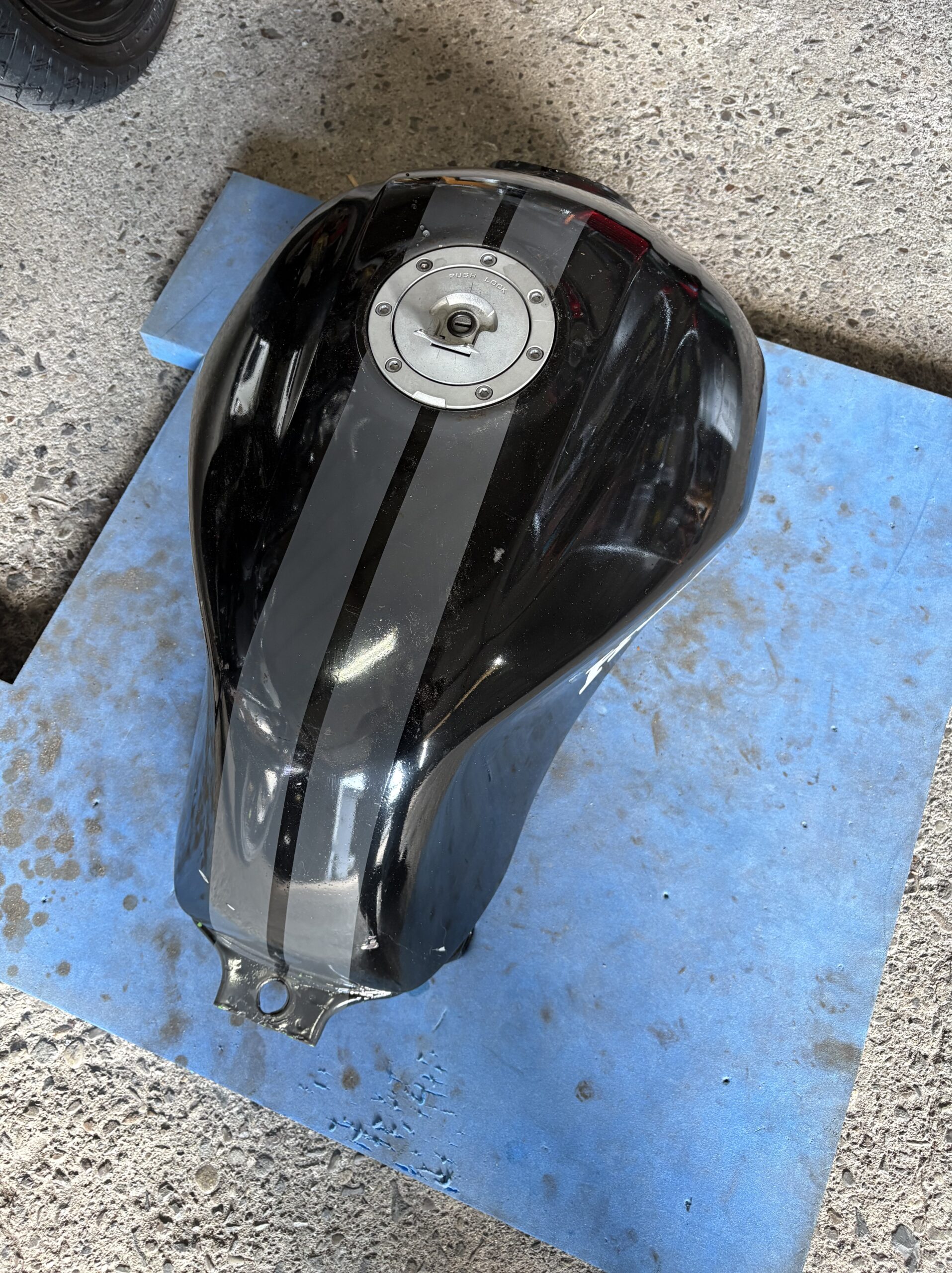 まず、車体からタンクを取り外し、内部の重要パーツを新しいタンクに移植します。